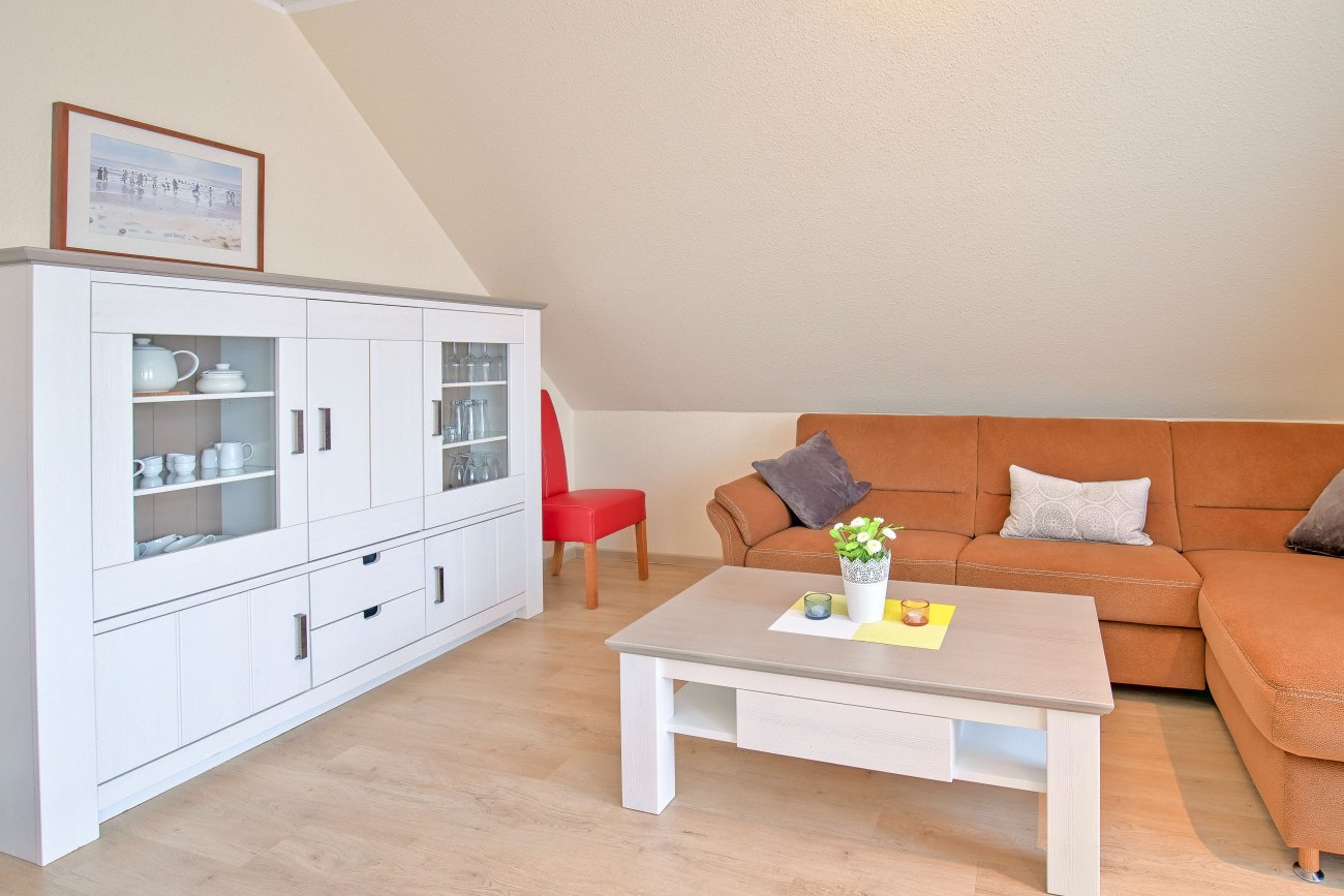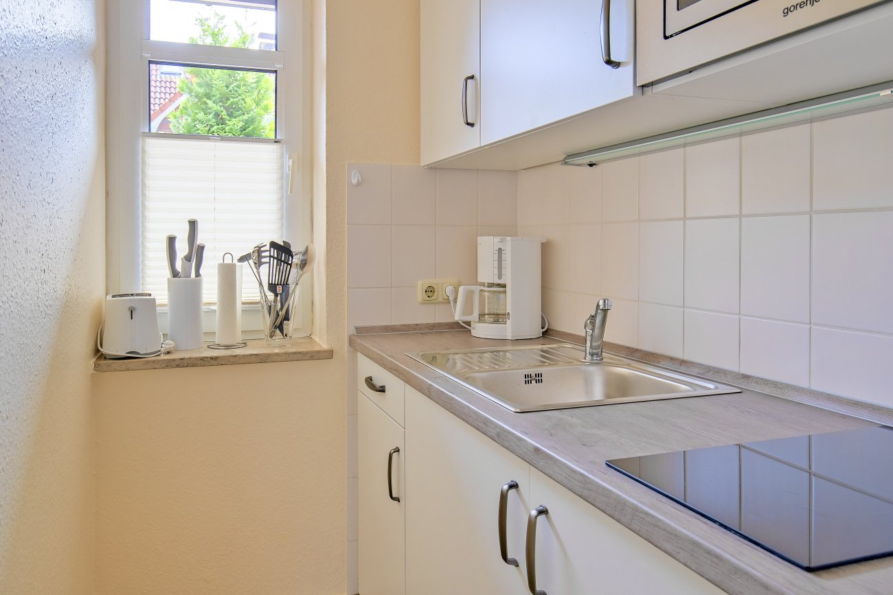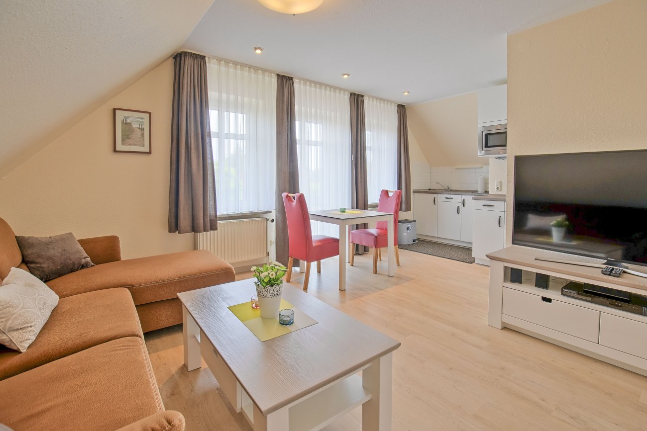 Wohnung „Sanddorn“,erste Etage, ca. 45 m², 2 – 3 Personen, 2 Zimmer, Küchenzeile, Dusche, WC, Abstellraum